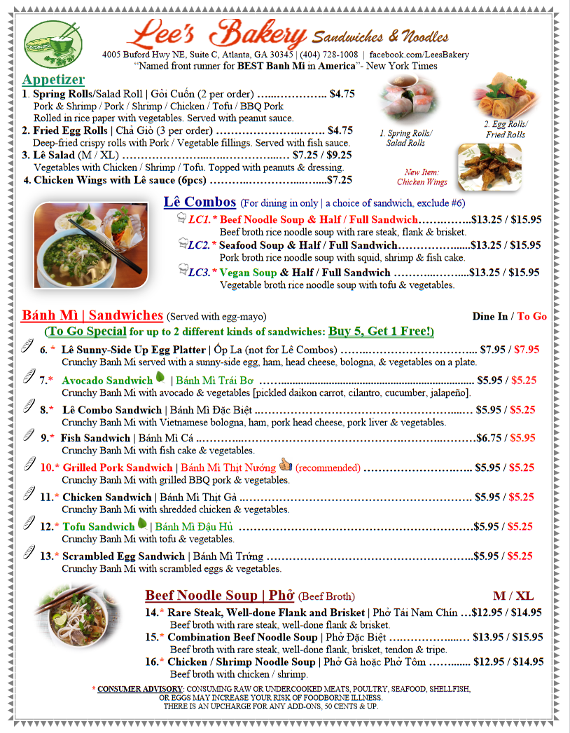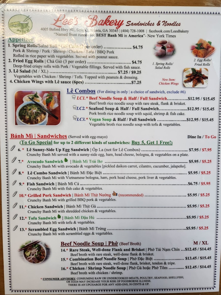 If you’re on the hunt for authentic Vietnamese cuisine in Atlanta, look no further than Lee's Bakery, a beloved gem located at 4005 Buford Hwy NE Suite C. With a rich offering of both traditional and contemporary Vietnamese dishes, this restaurant not only satisfies your cravings but also wraps you in a warm and welcoming atmosphere.